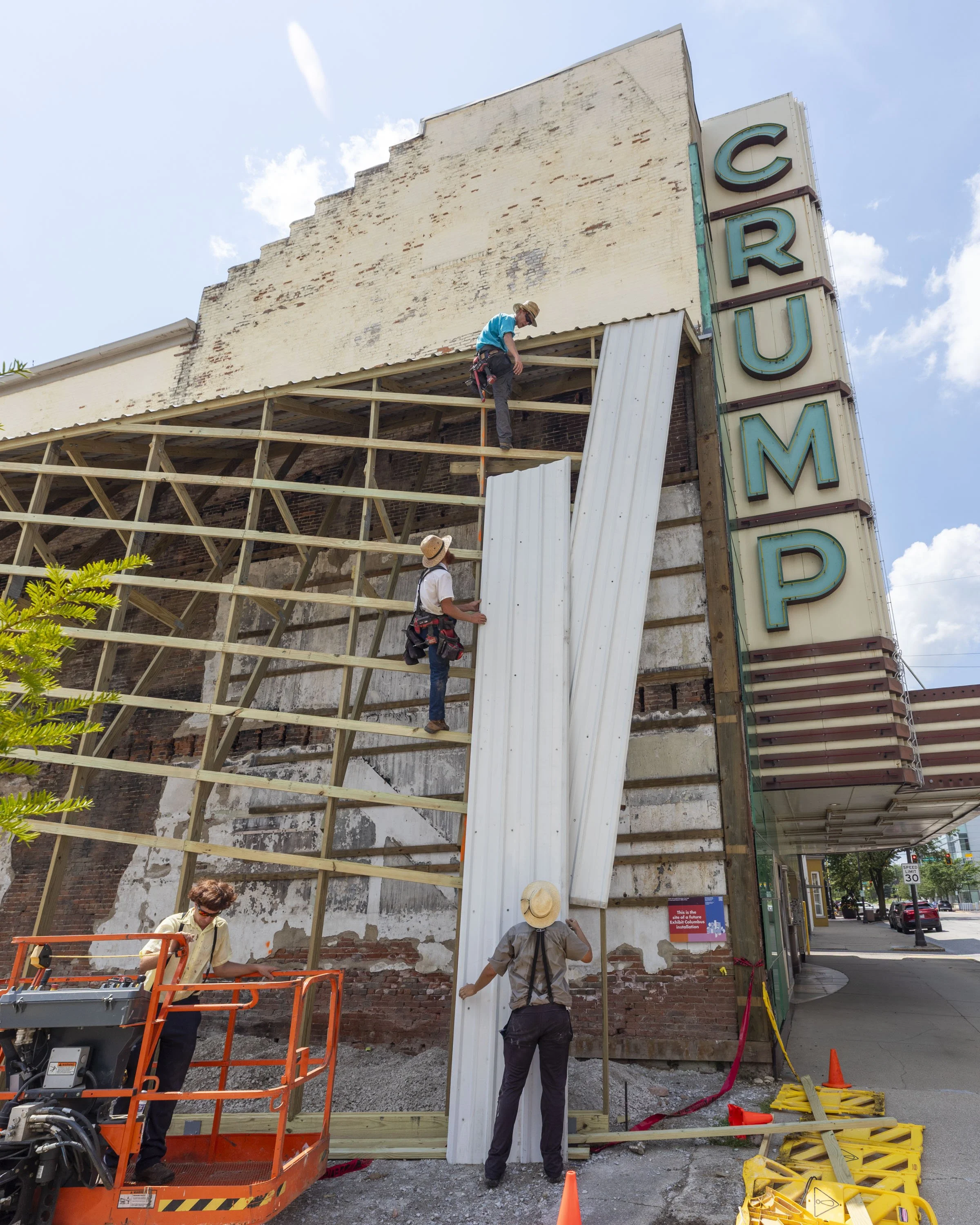 The 136-year-old Crump Theatre is a vessel that holds the collective memory of Columbus, one that is illuminated with the projections of a not-so-distant past. Accessing Nostalgia creates new apertures, literally and metaphorically, within and around The Crump that allows a creative nostalgia to be projected; a nostalgia not for historic reenactment, nor for historic revision, but one that searches for a past perfect that can point to an idealized future. The apertures, or portals are an attempt to peel away and gaze at parts of the building that demonstrate how it has reinvented itself over its history, and how it can continue that pattern in a way that expands its access to arts and culture.