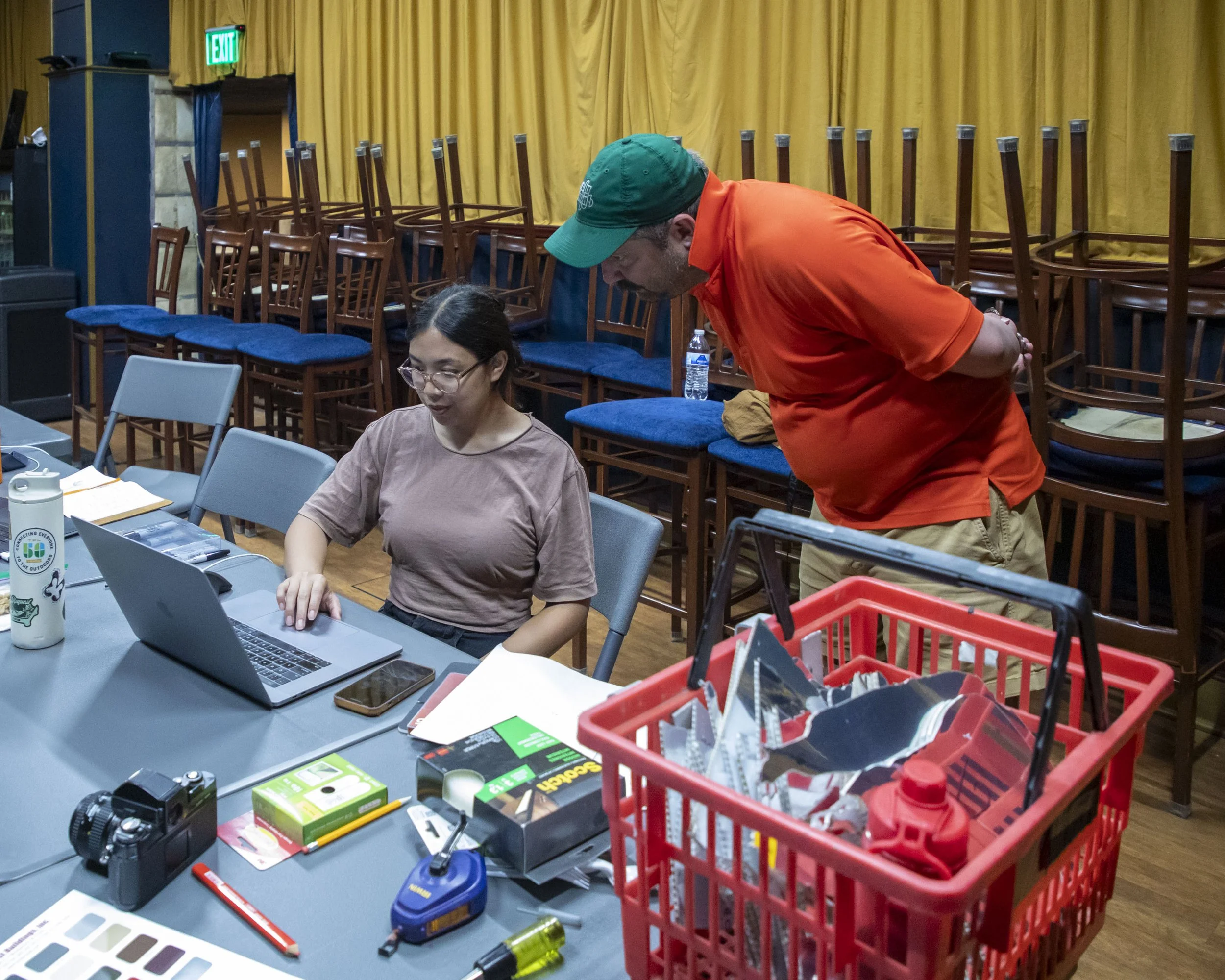 The Crump’s other issues interested Vinz, too. Since it is a 750-seat movie theater that employs obsolete technology, he hopes people will imagine what it would be like to totally reprogram it. And because the theater also has a history of racial segregation, he has outfitted the former opera box with materials from where the second-class seating had been to raise awareness and charge the space with material history. The box also contains a resource bookshelf with materials on a variety of topics related to preservation and adaptive reuse, especially as they relate to racism and segregation relevant to The Crump’s history.