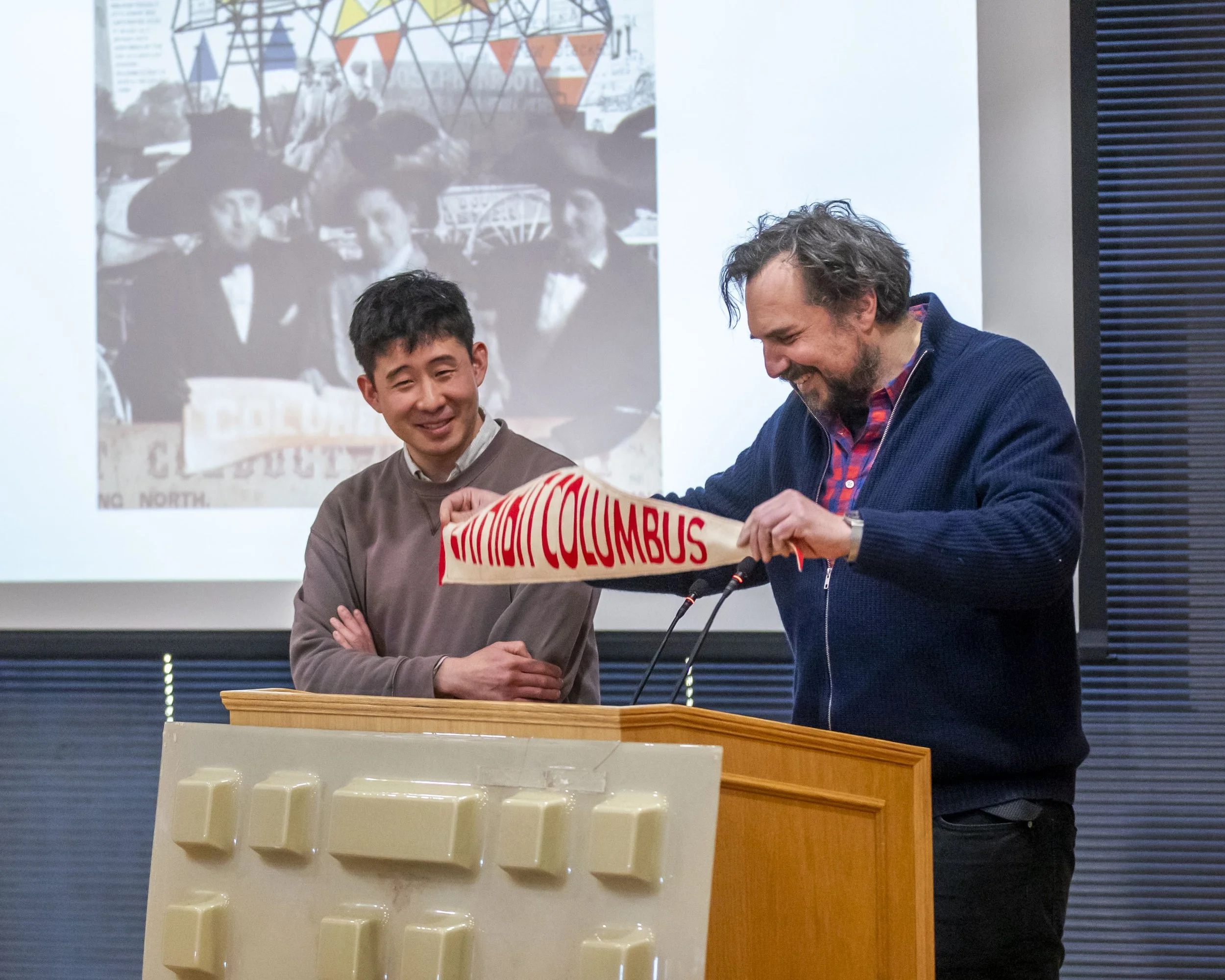 University Design Research Fellows Aleksandr Mergold, Andrew Fu, and Aaron Goldstein had never been to Columbus before last October, but as practicing architects, they knew it was a mid-century mecca.