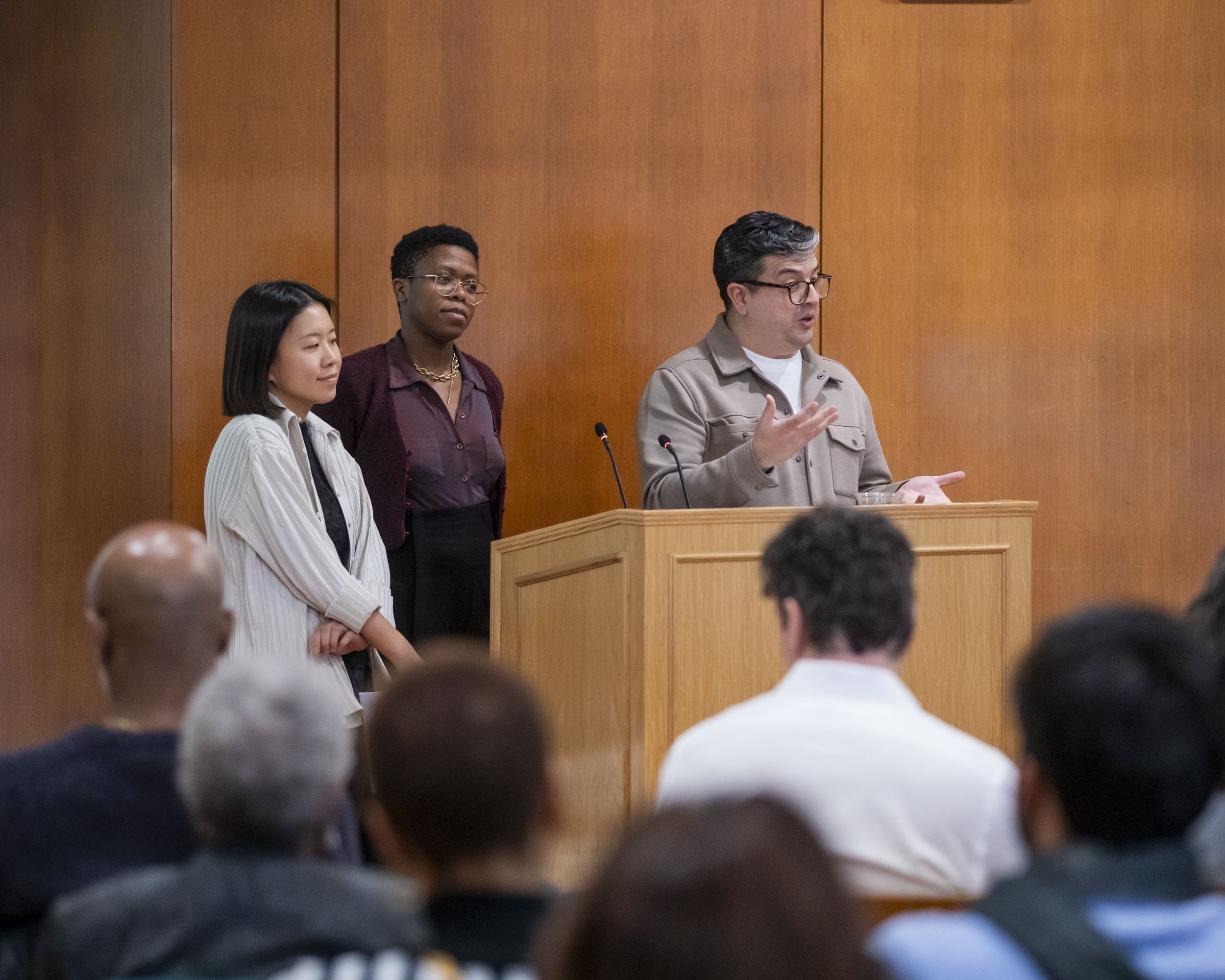 Amelyn Ng, Jess Myers, and César Lopez presented PUBLIC / SCHOOL / GROUNDS to a public audience at City Hall.
