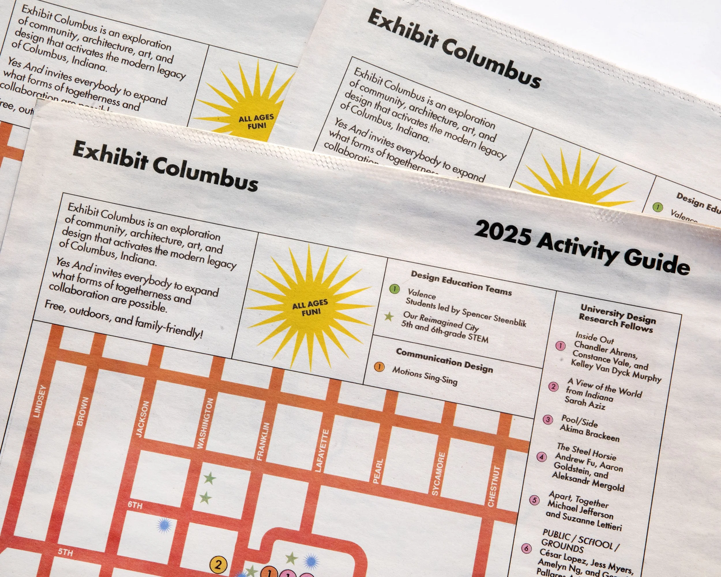 Exhibit Columbus is a program of Landmark Columbus Foundation and an exploration of community, architecture, art, and design that activates the modern legacy of Columbus, Indiana. It creates a two-year cycle of programming that uses the context of Columbus to convene conversations around innovative ideas and then commissions site-responsive installations to create a free, public exhibition that demonstrates the power of art and architecture to make cities better places to live for everyone.